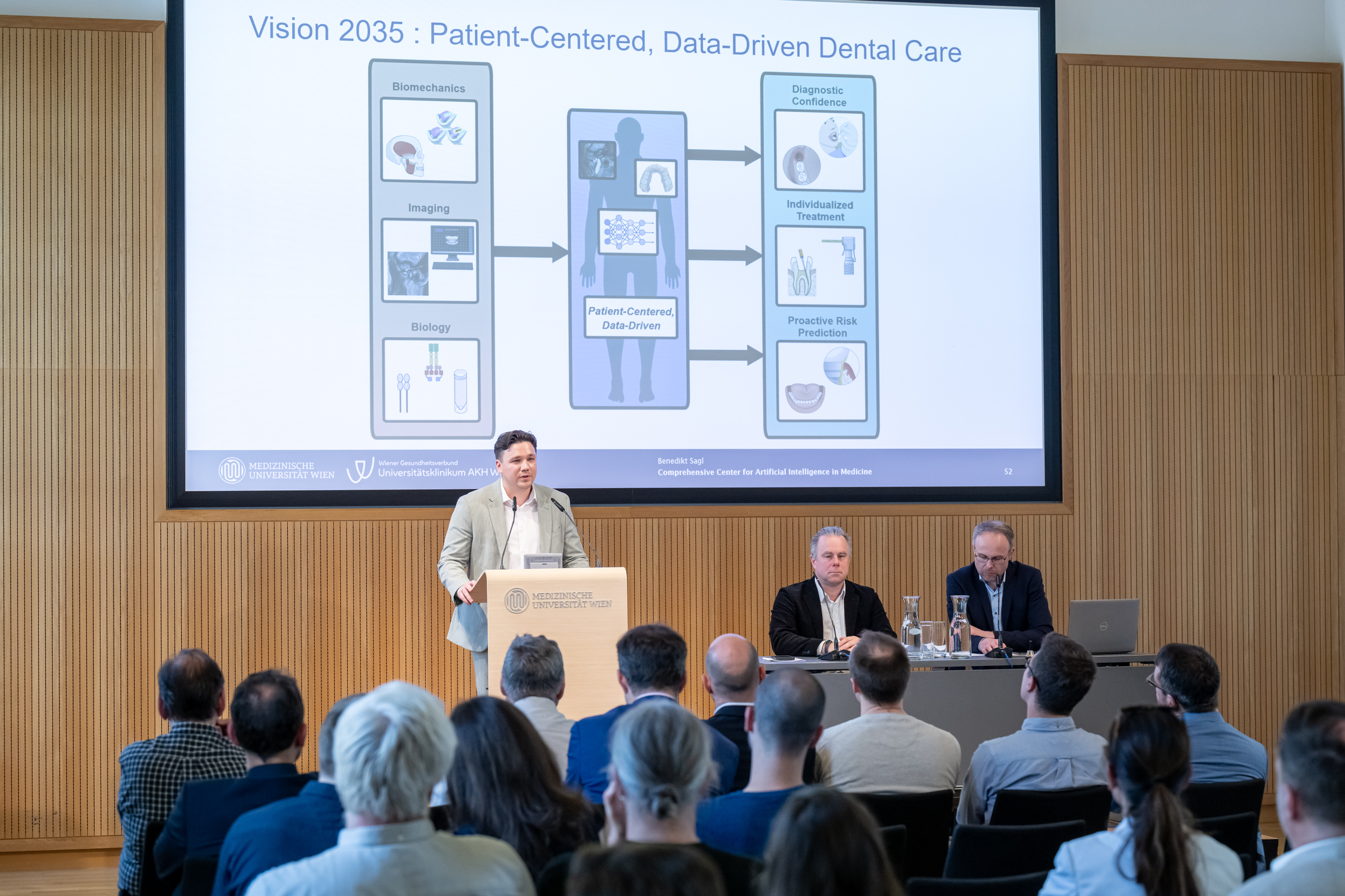 - Benedikt Sagl showed applications of ML in dental medicine, and its use in integrating multi-modal data ranging from imaging data to functional measurements.